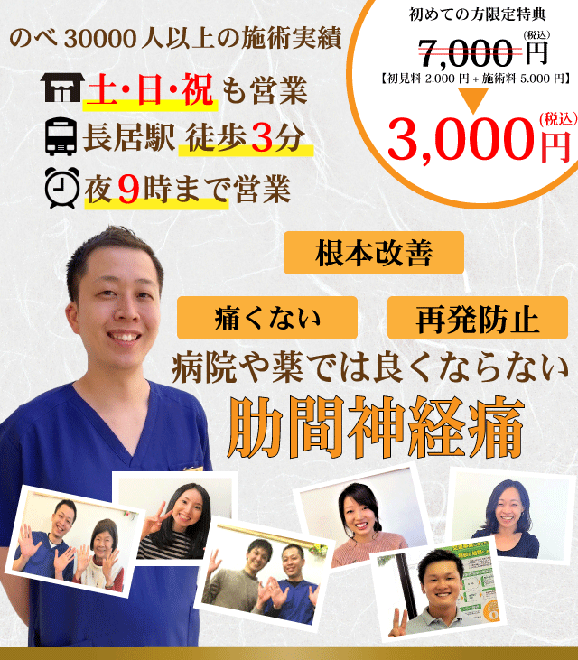 今まで肋間神経痛の痛みで悩まれている方にたくさんお会いし、施術をしてきました。