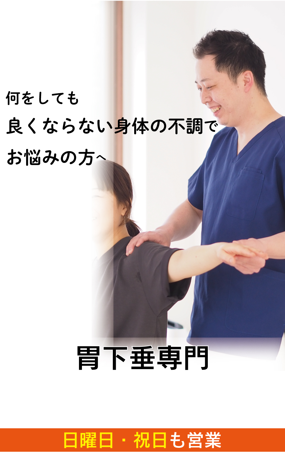 当院ではこれまで多くの胃下垂でお困りの方たちを診ており、「必ずお悩みの症状を改善に導く」という自信を持って施術を行っています。